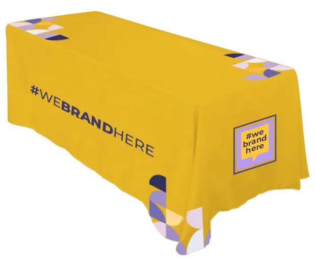 A Slip-over tablecloth is a unique and creative way to showcase your brand. They are designed to cover tables and can be customized with your brand's colours and logo. Slip-over tablecloths are perfect for trade shows, conferences, and events where you need to create a professional and branded look for your booth or table. They are available in different sizes and materials such as polyester or spandex.