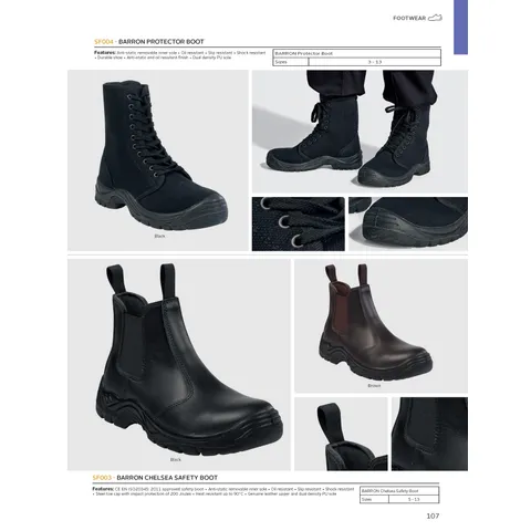 CE, NRCS, Oil resistant , Slip resistant , Shock absorbent , Heat resistant up to 90°C , Anti-static removable inner sole, CE EN ISO20345: 2011 approved safety boot , Genuine leather upper and dual density PU sole, Steel toe cap with impact protection of 200 Joules , This item is not waterproof and not suitable to be used in wet conditions