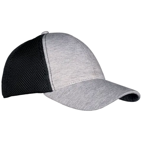 Oeko-Tex, Low profile, Structured 6 panel, Melange front panel, Plastic snap closure, Contrast Mesh back and side panels, Single jersey front and Polyester mesh back panels
