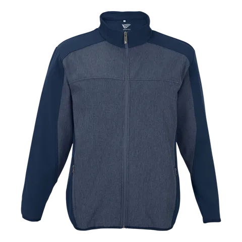 Funnel collar, Ernie Els branding, Front zipper pockets, 300g Poly Spandex bonded fabric , Fitted sleeves with panelled design, Melange panels on front and back body , Inner chest pocket with rubberized earphone hole, Tonal elasticated binding at hem and sleeve hem , Centre front inverted Nylon full zip opening with metal zip puller
