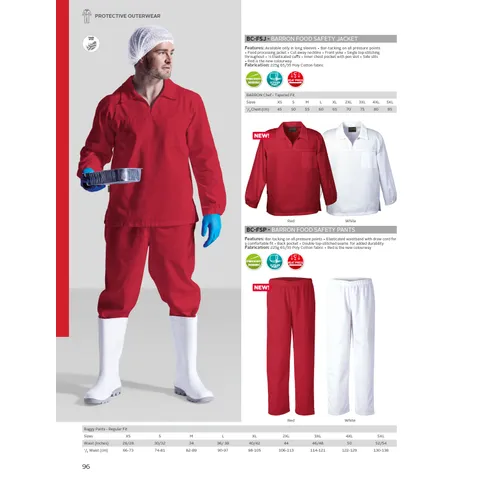 Side slits, Front yoke , Cut-away neckline , ½ Elasticated cuffs , Proudly South African, 225g 65/35 Poly Cotton, Food processing jacket , Available only in long sleeves , Single top-stitching throughout , Inner chest pocket with pen slot , Bar-tacking on all pressure points