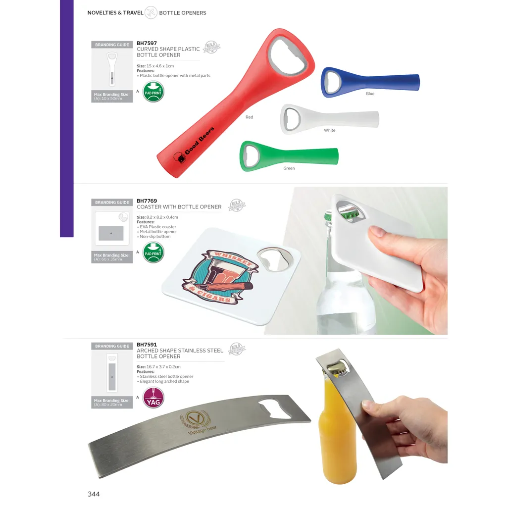 BH7597 - Curved Shape Plastic Bottle Opener read more ↓ read less ↑