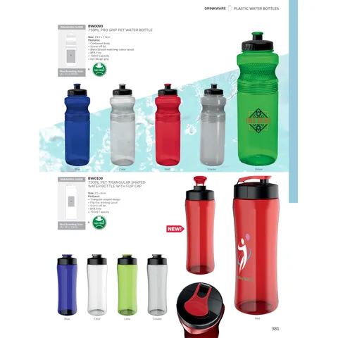 BW0109 - 750ml PET Triangular Shaped Water Bottle With Flip Cap read more ↓ read less ↑