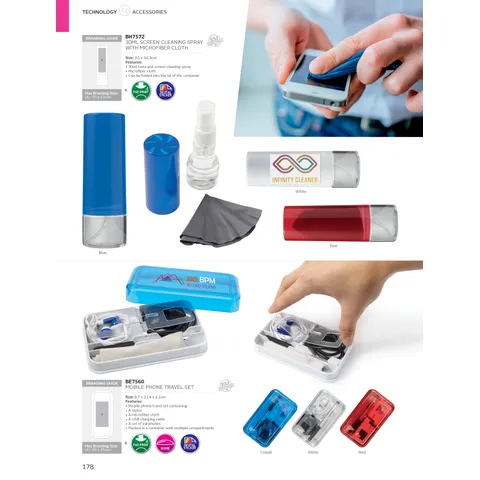 Microfiber cloth, Size: 3.5 x 10.3cm, 30ml Lens and screen cleaning spray, Can be folded into the lid of the container